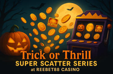 The Super Scatter Series at REEBET88 CASINO isn’t your average slot event — it’s a thrilling adventure through the Halloween spirit of luck and surprise. Each participating slot is loaded with Halloween-themed symbols, scatter mechanics, and hidden bonuses that unlock jaw-dropping prizes.